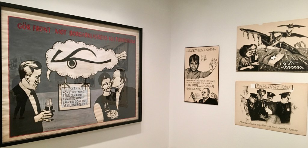 En bit från Elisa har vi min gamla teckningslärare, Allan Friis. Hans politiska oljor är verkligen tidsbundna och visar på vår naivitet från den tiden. Vi trodde att vi förstod så mycket då vi var unga och omogna.
