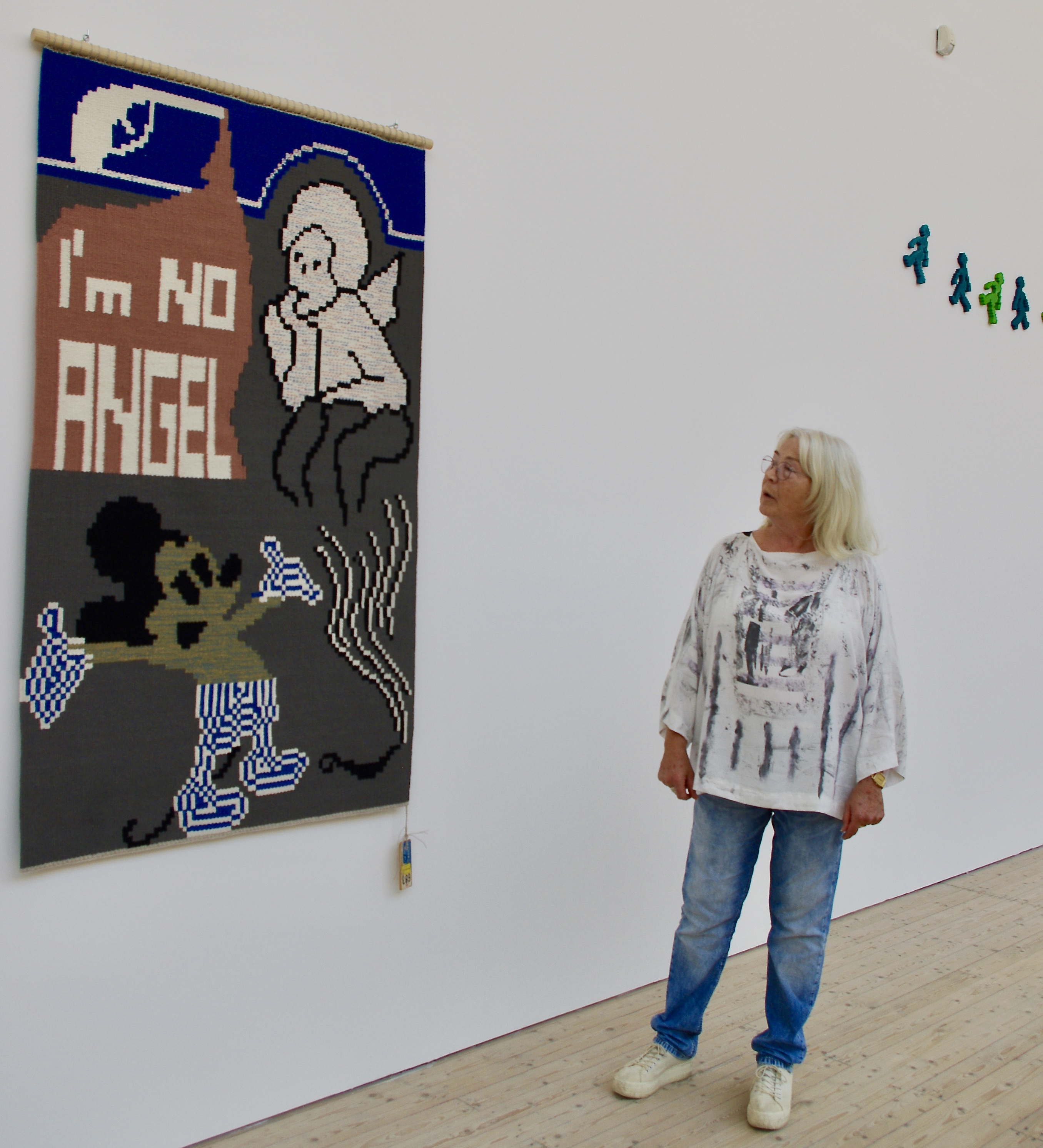 Det största rummet har vikts åt Malmökonstnärinnan, som här får vika ut sig med sin digitalgrafik och textilier. Det har blivit mycket passande i Konsthallen, med dess stora vita väggar och strålande dagsljus. Rummet framhäver verkligen hennes verk och ger dem en möjlighet att andas, vilket gör besökarens upplevelse ännu mer intensiv.