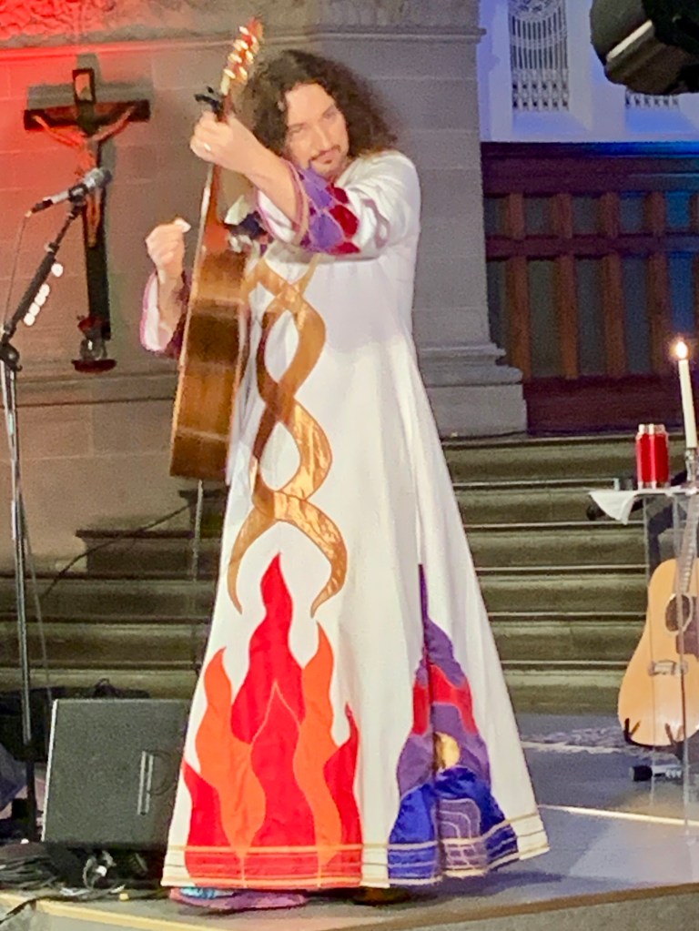 Thomas kommer in i en prästliknande kaftan och publiken jublar i den fullsatta kyrkan. Med sig har han sin vän och keyboardspelare, Andreas Ahlénius. Tillsammans ger de liv i flera av Thomas bästa låtar och hits.