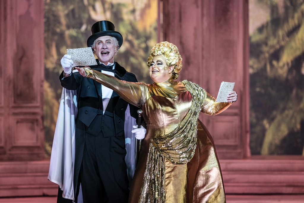 Samma gäller för Elinor Fryklund som Thaliafiguren. Hon vill så mycket men det hamnar mest i oväntad torrhumor. Även den norska sopranen Eir Inderhaug som spelar full efter pausen är enbart pinsamt att ta del av.