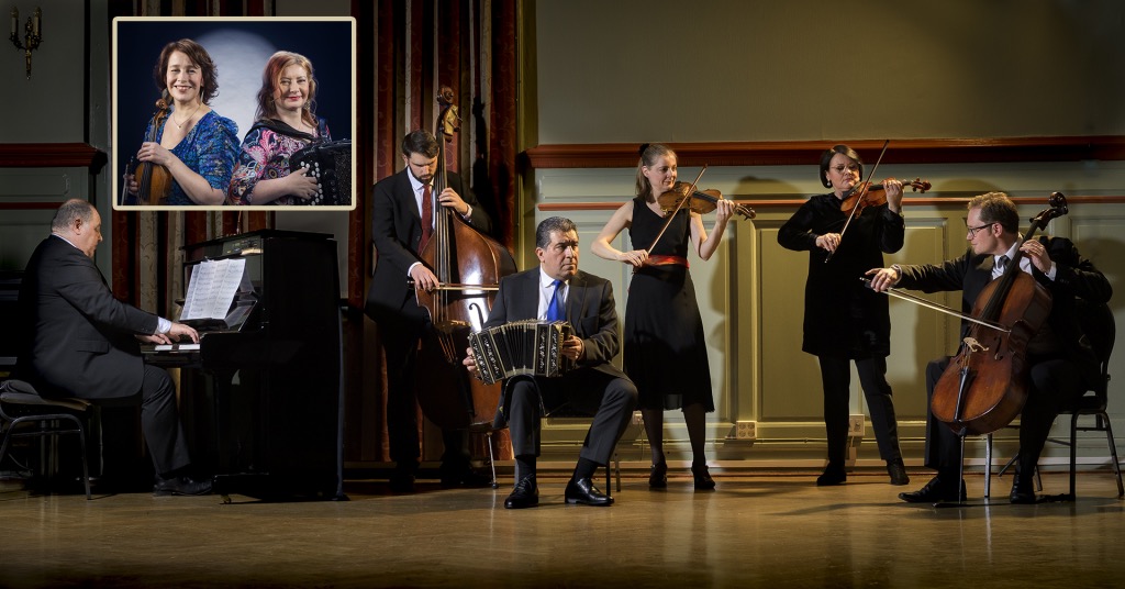 Orquesta Tangarte, med de finländska musikerna Maria Kalaniemi och Marianne Maans, till vänster.