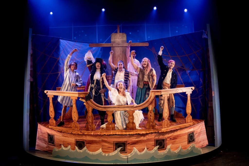 Per Anderssons skuttande som skugga och som hund är energikrävande att se på, lite roligare blir han som pirat, men även där för mycket av att vilja visa upp sig. Fast det ska föreställa amatörteaterns överdrifter.
