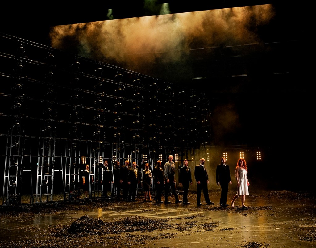 1. Intressant hur olika man kan uppleva en föreställning. För mig var denna Salome en oerhört intelligent och exakt genomtänkt föreställning — även om associationsfloran varierar en aning — och bland det bästa jag någonsin sett på en teaterscen. Oerhört kraftfullt i alla delar, med kopplingar mellan ton, rörelse, ljus, dekor osv på ett raffinerat sätt. Associerar såväl till nazitysklands askhögar och lägermiljö som till vårt nutida Europas sammanbrottsväg i samma riktning detta det stora sammanbrottets startår 2025. Och ”de sju slöjornas dans” blev något helt annat än sedvanlig förförisk magdans, snarare världens ”avslöjningsdans”, där människomassorna dras med i Ödets förförande, vilsna vilddjursdans, likt Wien på sin tid dansade och log.. Här dras hela dekoren med i dödsdansen likt en väldig ödestung malström, oerhört starkt och skickligt! Att sångarna fick kämpa extra beror på lagren av dämpande aska på hela scenen. Såhär används Malmös unika stora jättescenrum på absolut bästa sätt, som ett besök på en främmande mörk planet ungefär. Mycket bra!