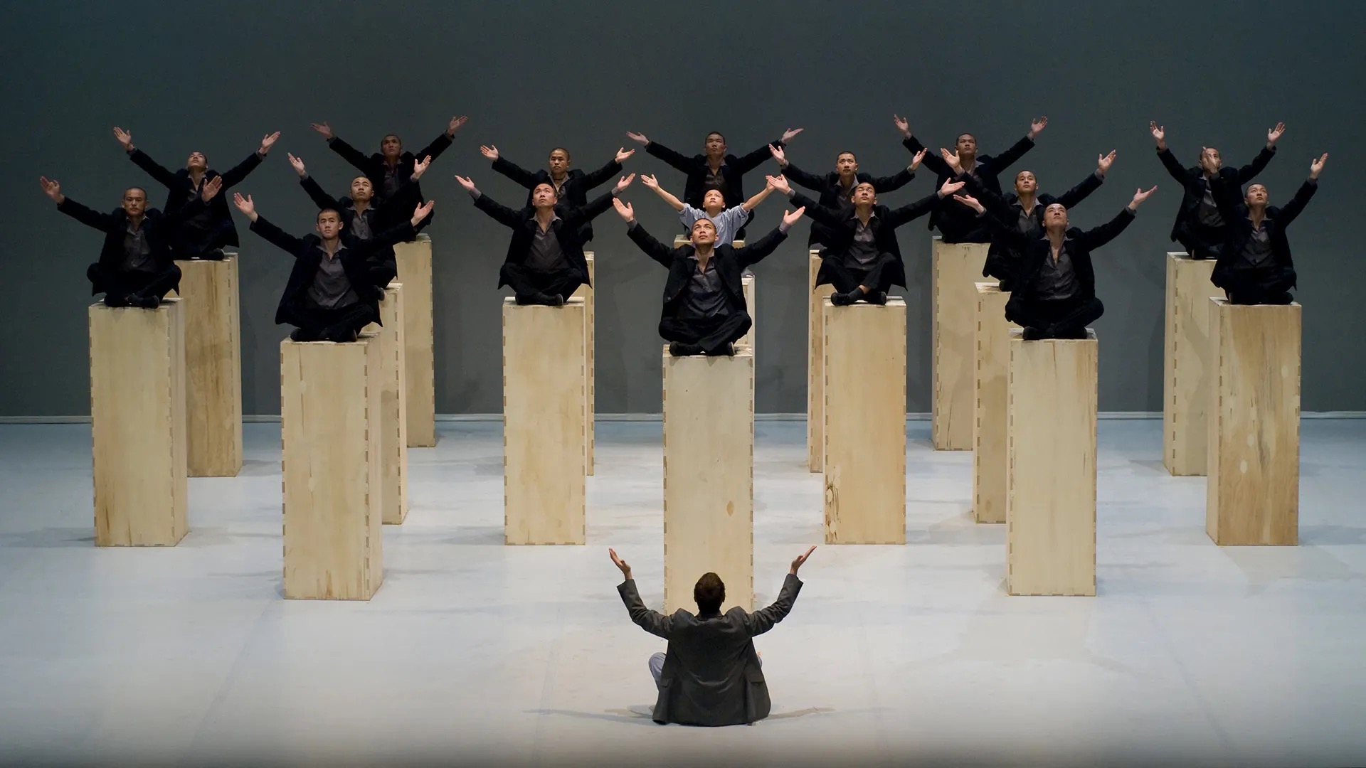 Denna omtalade föreställning med munkar från Kina är mer show än en stillsam kontemplation. Det studsas och hoppas i och på kistliknande boxar.