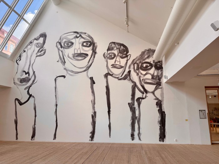 Det är ingen lätt utställning att ta till sig. Vid första anblicken ger den ett splittrat intryck. Personer verkar ha trivts med att kladda och teckna som de vill. Detta skapar en känsla av spontanitet och frihet. Det må se rörigt ut för den oinvigde. Detta första intryck är endast en del av en djupare upplevelse som utställningen erbjuder.