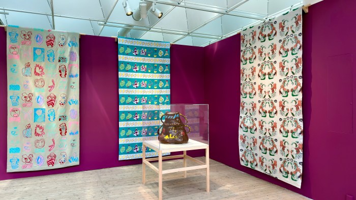 Mawuena Kattah har gjort udda och färgrika porträtt på sina vänner, samt keramik och ghananska tyger. Hennes verk utstrålar en livlig energi som nästan lämnar åskådaren med en känsla av glädje. De färger och mönster som används i hennes konst ger en djupgående insikt i de kulturella identiteter hon utforskar. Detta ger en dimension till utställningen som känns både personlig och universell.