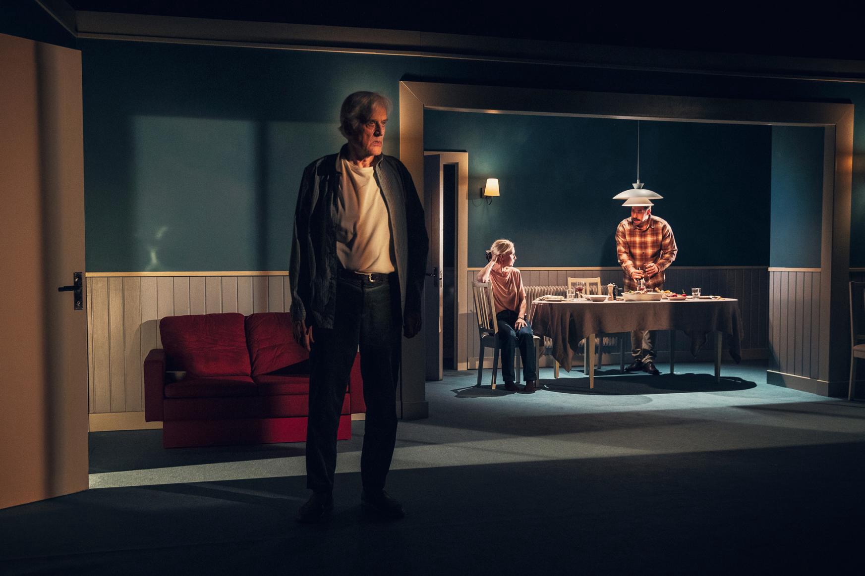 Jag tänker på hur Anthony Hopkins i filmen The Father gjorde ett så starkt intryck. Jag kan inte låta bli. Jag jämför omedvetet. Med sin briljanta tolkning lyfte han hela berättelsen till nya höjder. Liksom de andra medverkande i filmen; på scenen är det helt urvattnat. Duktiga skådespelare sjunker i sina prestationer. De lyser inte när de inte får den styrning de behöver.