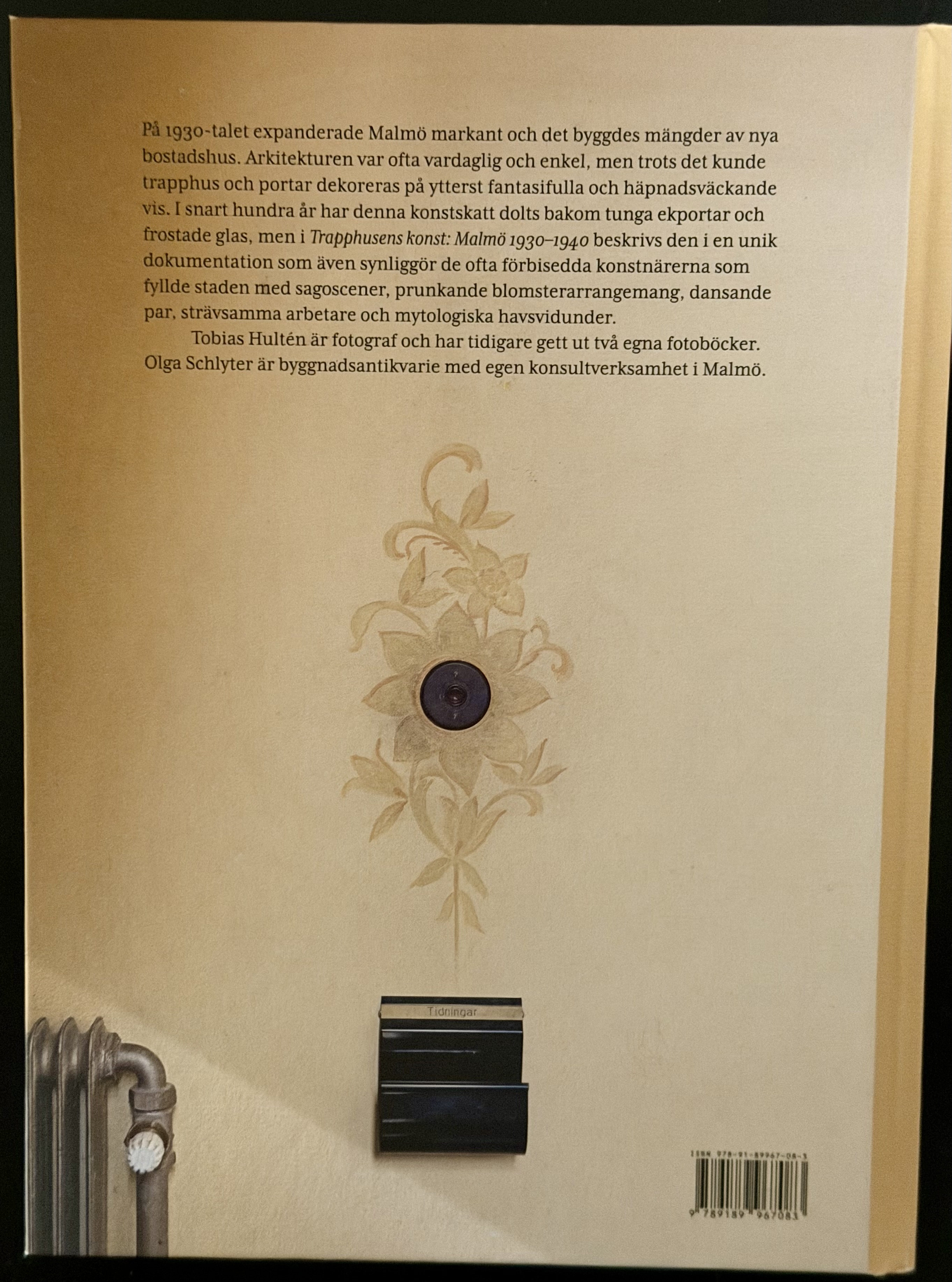 Det har resulterat i en förnämlig bok med ett stilrent omslag som verkligen är en fröjd för ögat. Boken innehåller ett rikt utbud av bilder från våra bevarade trapphus i Malmö under 30- och 40-talet. Dessa bilder är inte bara dokumentation av en förlorad tid. De är även en inspiration för oss att ta tillvara på och värna om vår historia.