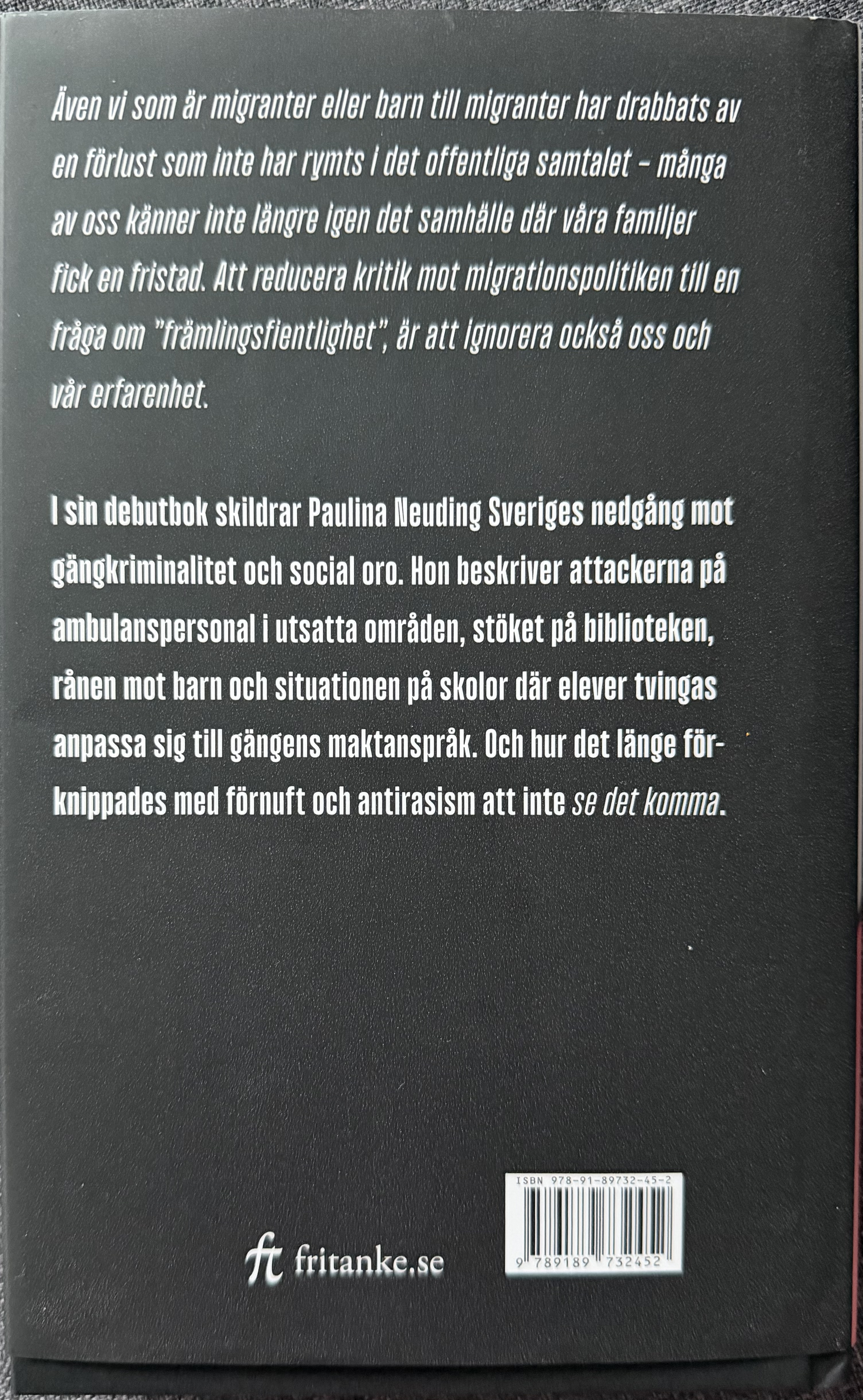 Jag instämmer helt med vad Paulina Neuding skriver i sin bok, men för mig är här inget nytt om Sveriges tillstånd. Då jag följt henne under flera år så är det flera gamla artiklar; som här kommer i repris.