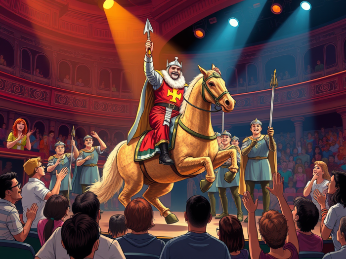 MMMMKung Arthur och hysterisk humor på scen Detta är det tokroligaste jag någonsin sett som musikal. Monty Python driver hejdlöst med den gamla Kung Arthursägnen om letandet efter den heliga Graal. Liksom de drev med Jesus i Life of Brian. Kung Arthur och hans riddare kommer "inridande" till ljudet av ett par kokosnötskal som hans riddare slår samman. De låtsasrider … Fortsätt läsa Monty Pythons Spamalot/Musikal i Tivoli